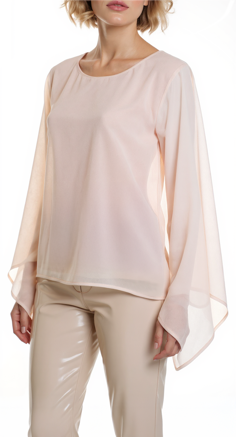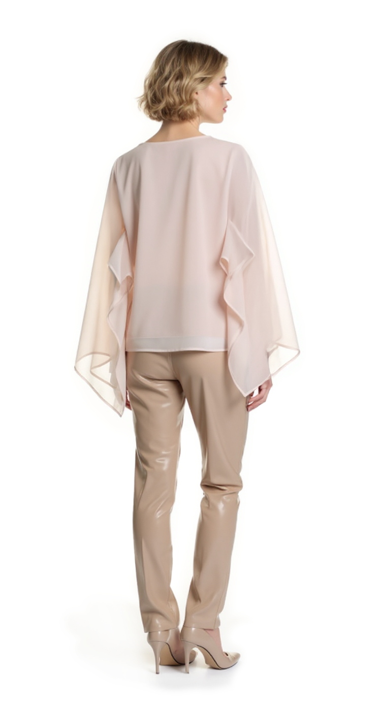 Блуза Max Mara: сочетание изящного шифона с глянцевой кожей создают образ тихой роскоши, не требующей лишних слов.🔥Продолжение серии AI Fashion Photo Shorts.