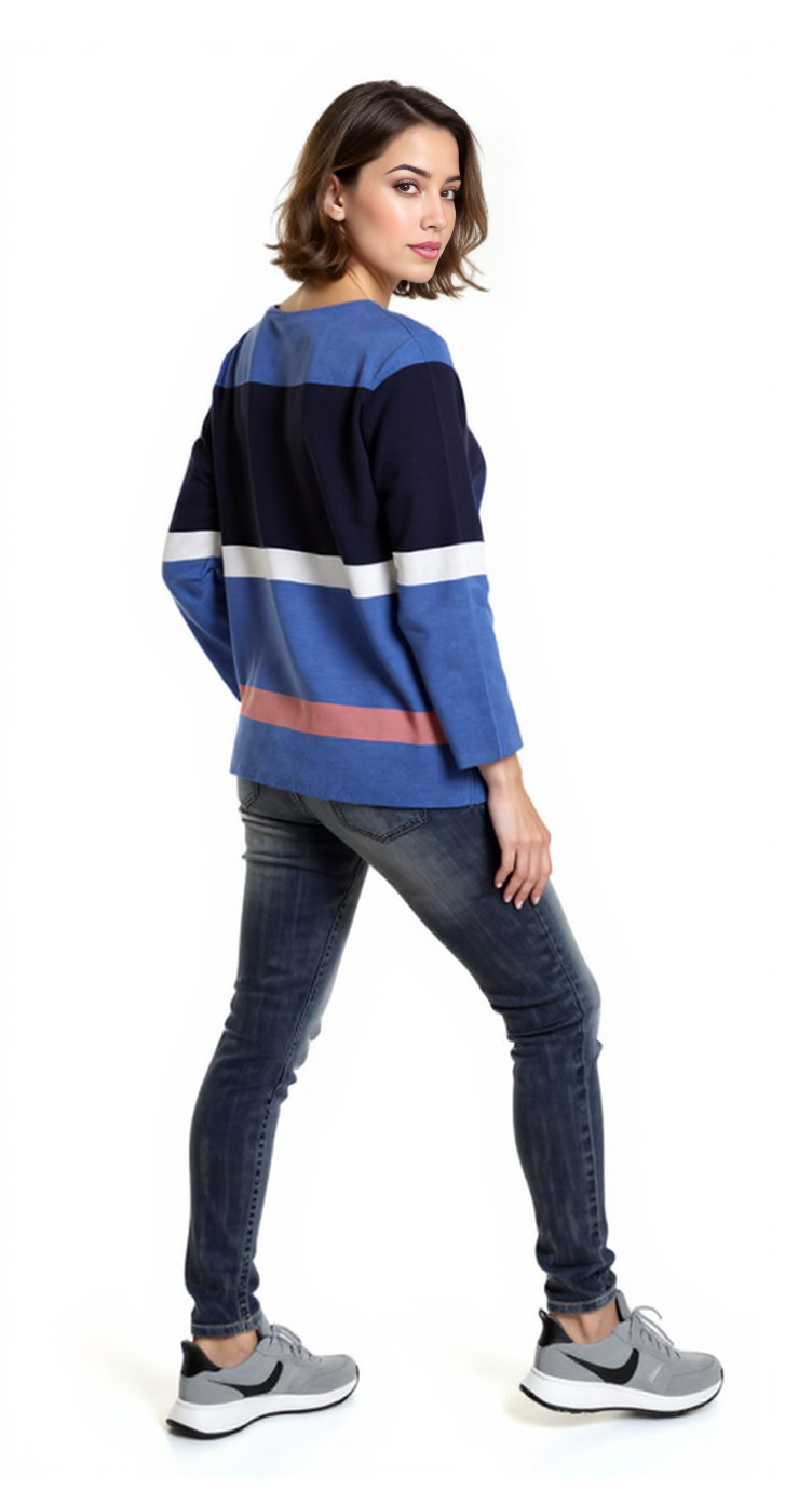 Джемпер Max Mara: ничего лишнего, только полосы)) А, насколько ярким и динамичным становится образ ✨ Продолжение серии AI Fashion Photo Shorts.