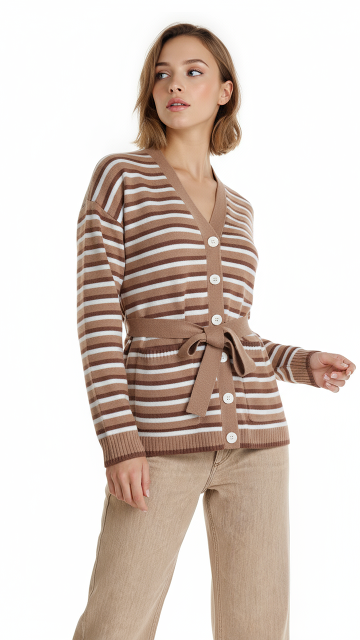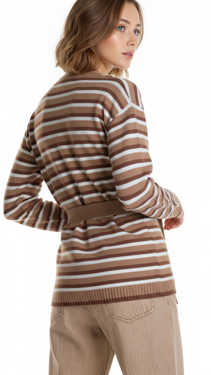Кардиган Max Mara: полоска, которая никогда не выходит из моды, а в бежевом исполнении всегда найдет себе «пару», особенно в классике «белый-бежевый». 🤍 AI Fashion Video Shorts.