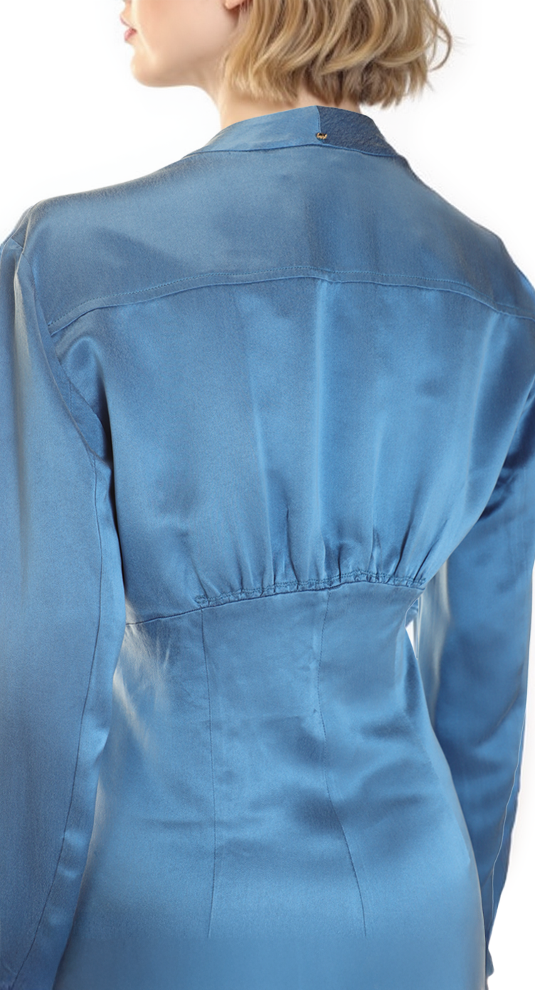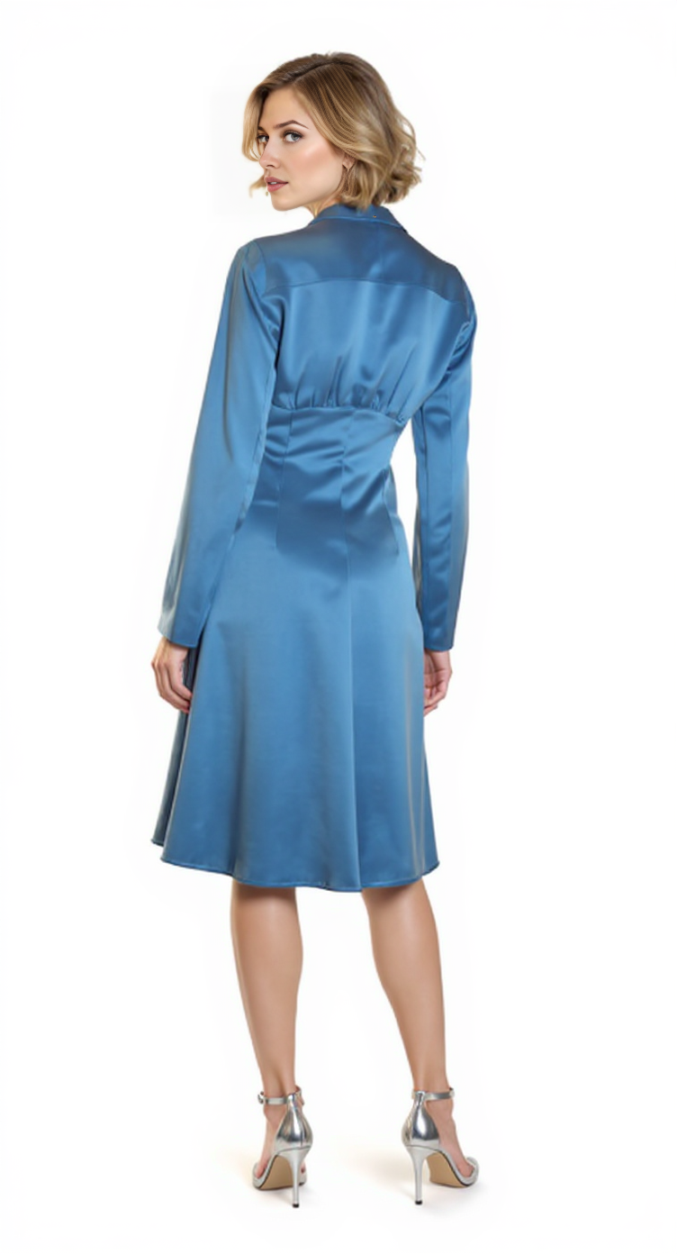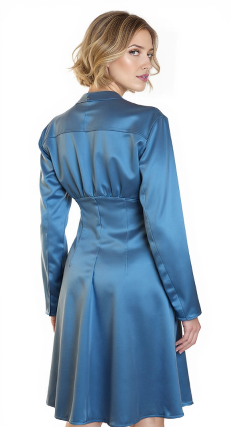 Платье Max Mara: сочетание сложного лазурно-голубого цвета, атласной фактуры ткани и рельефного дизайна — это истинное произведение искусства, как все, что сделано в Италии. 🔥 Продолжение серии AI Fashion Photo Shorts.