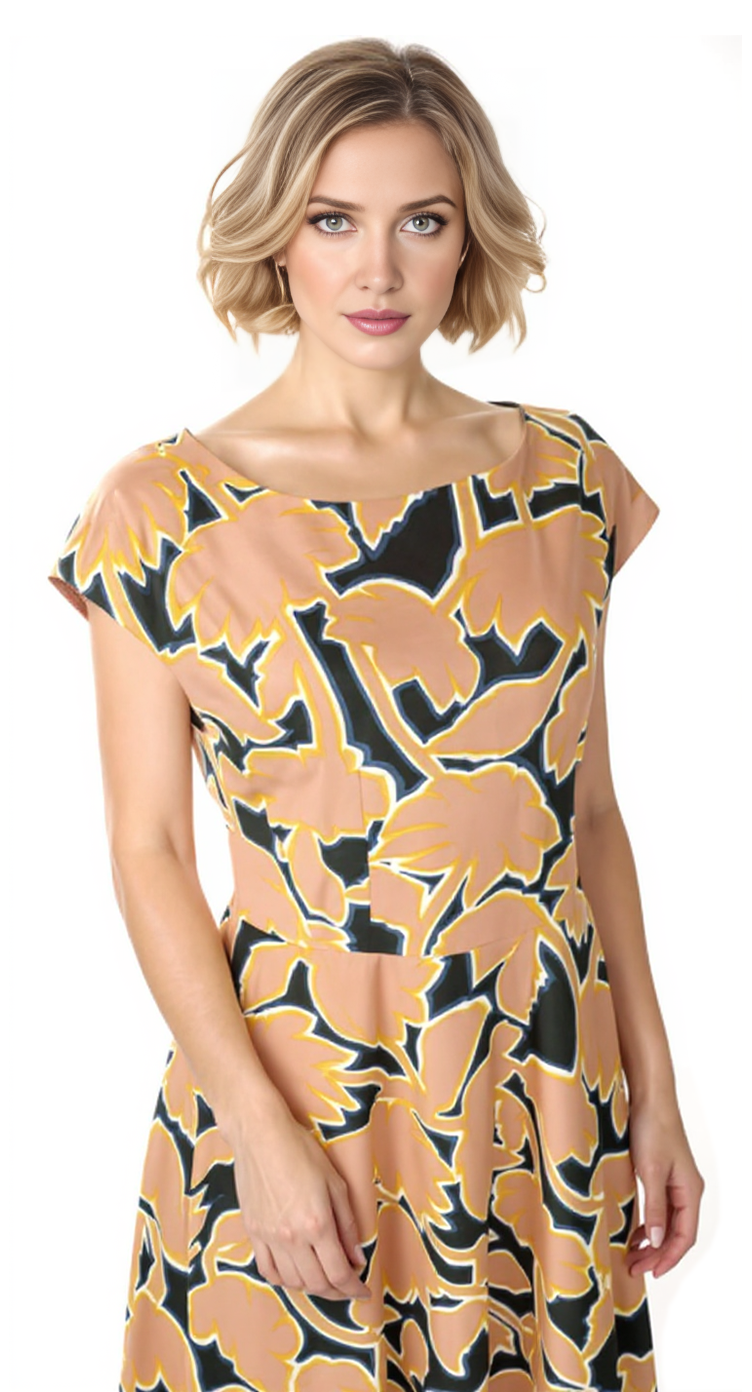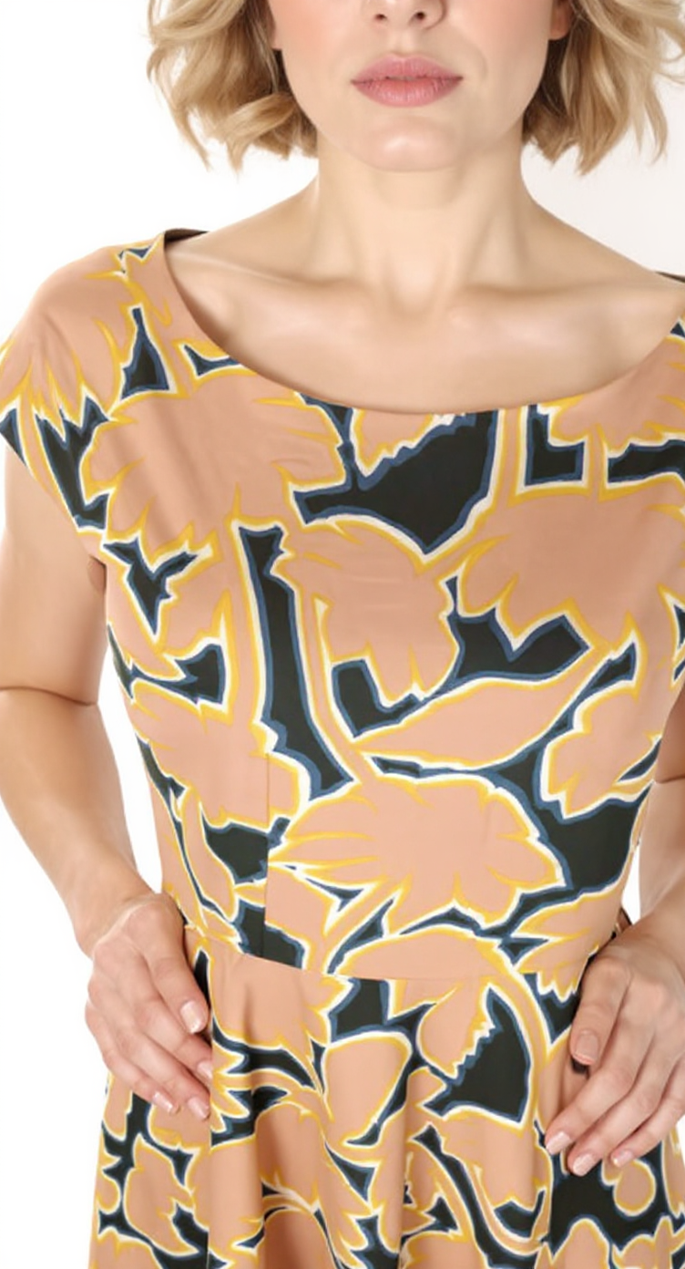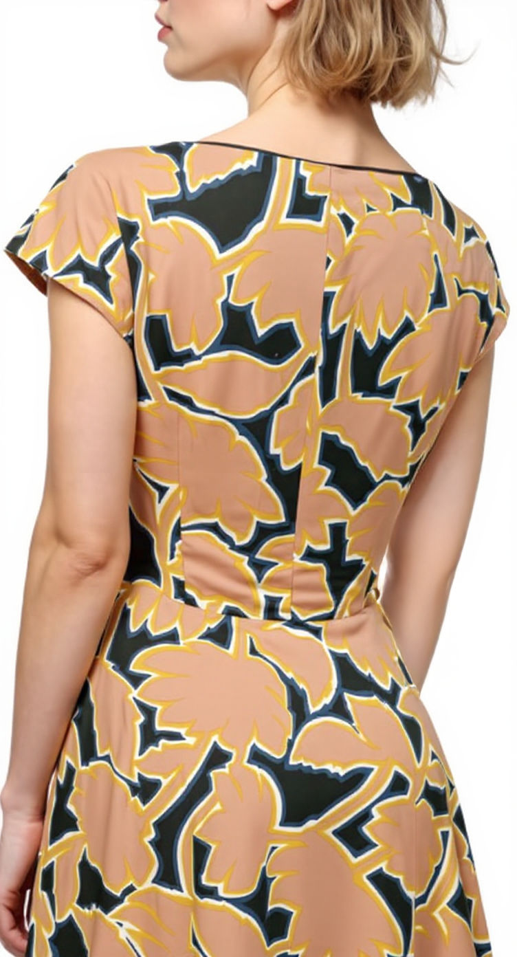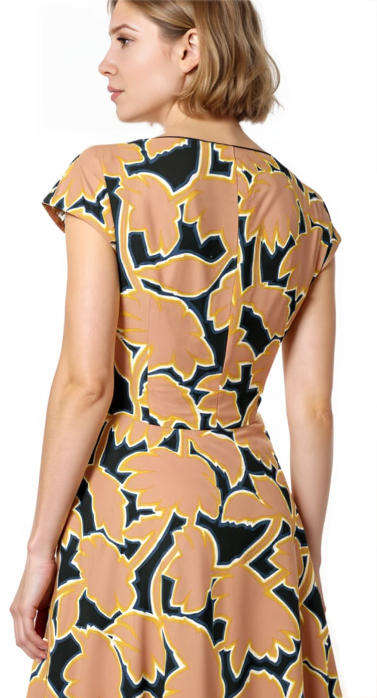 Платье Max Mara: приветствуем скорое наступление осени крупным лиственным принтом с желтой окантовкой 🍃 Продолжение серии AI Fashion Photo Shorts.